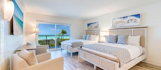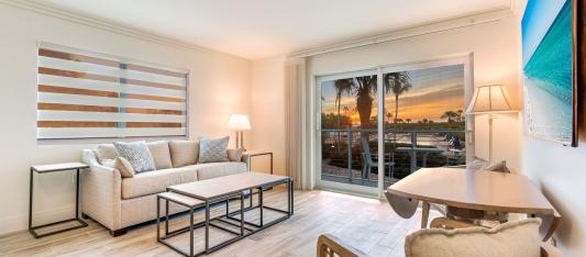Sanibel InnOur Top Floor Gulf View One Bedroom Suites feature stunning views of the Gulf of Mexico and our beautiful landscaping from your private screened balcony with lots of interior room to relax. Enjoy a king sized bed in a separate bedroom and a sleeper sofa in the living room facing the beautiful views. Each suite has a full kitchenette and a long list of luxurious amenities and just steps away from our 600 feet of private beachfront.