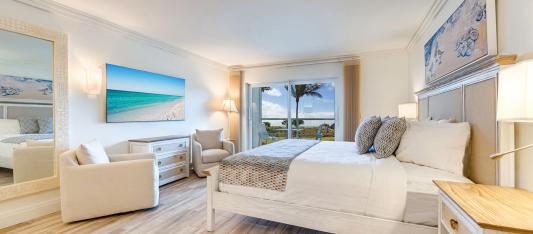 Sanibel InnOur Top Floor Gulf View One Bedroom Suites feature stunning views of the Gulf of Mexico and our beautiful landscaping from your private screened balcony with lots of interior room to relax. Enjoy a king sized bed in a separate bedroom and a sleeper sofa in the living room facing the beautiful views. Each suite has a full kitchenette and a long list of luxurious amenities and just steps away from our 600 feet of private beachfront.